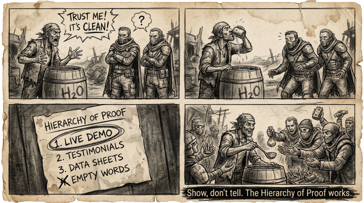 Follow the journey of a cynical ex-marketer as he navigates the wasteland using nothing but his wits and a head full of frameworks that once sold software and online courses. Now, they sell survival. INSIDE, YOU’LL DISCOVER: